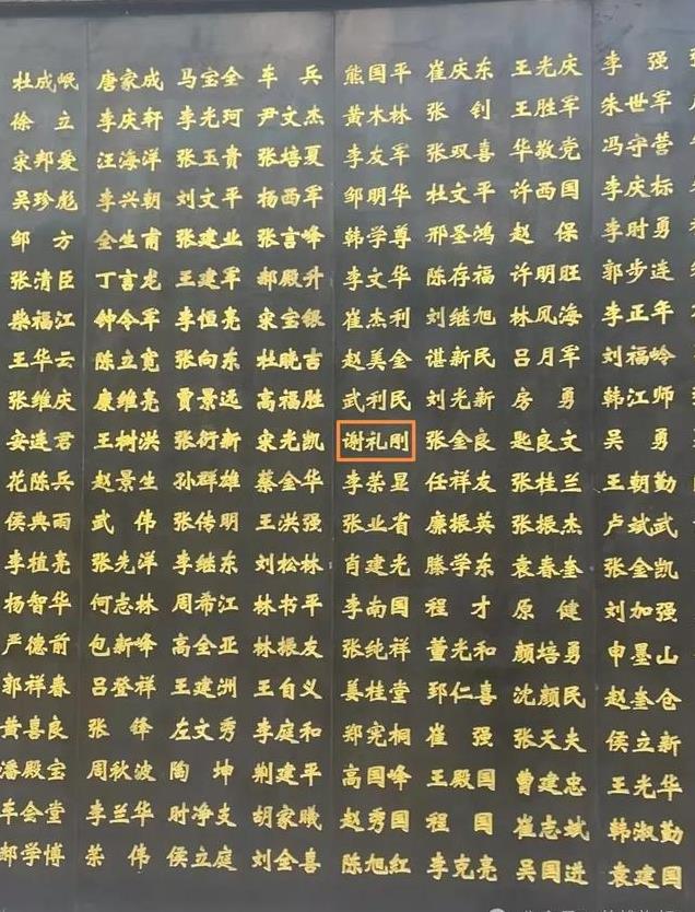上图:谢立(礼)刚烈士的名字在英烈墙本张图片第5组第10行