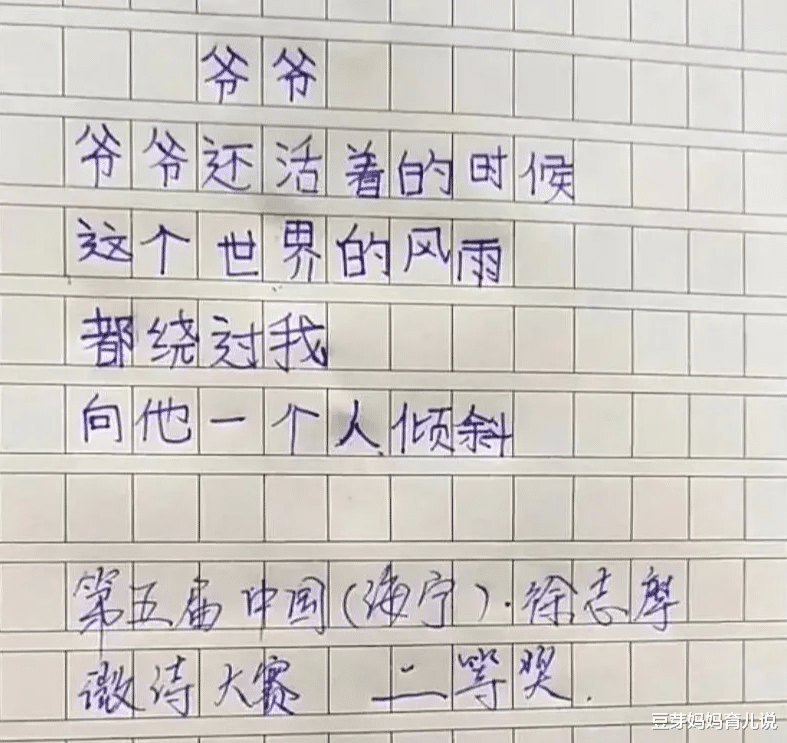 无独有偶,前段时间看到一位小朋友写的小诗《爷爷》: