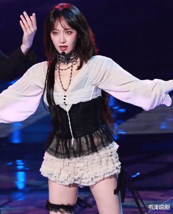 在《说爱你》的舞台上,白鹿身穿露肩不规则短裙而来,在台上蹦跳元气,副歌结束还专门设计了一段舞蹈,伴随着舞姿魅惑一起展出的还有她凹凸有致的身材。