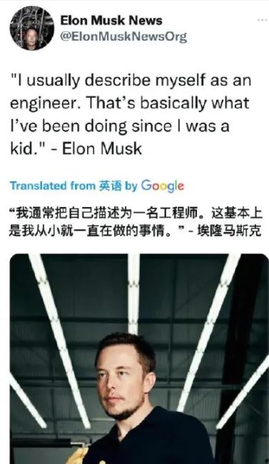 马斯克在社交媒体上表示,“我通常把自己描述为一名工程师。这基本上是我从小一直在做的事情。”