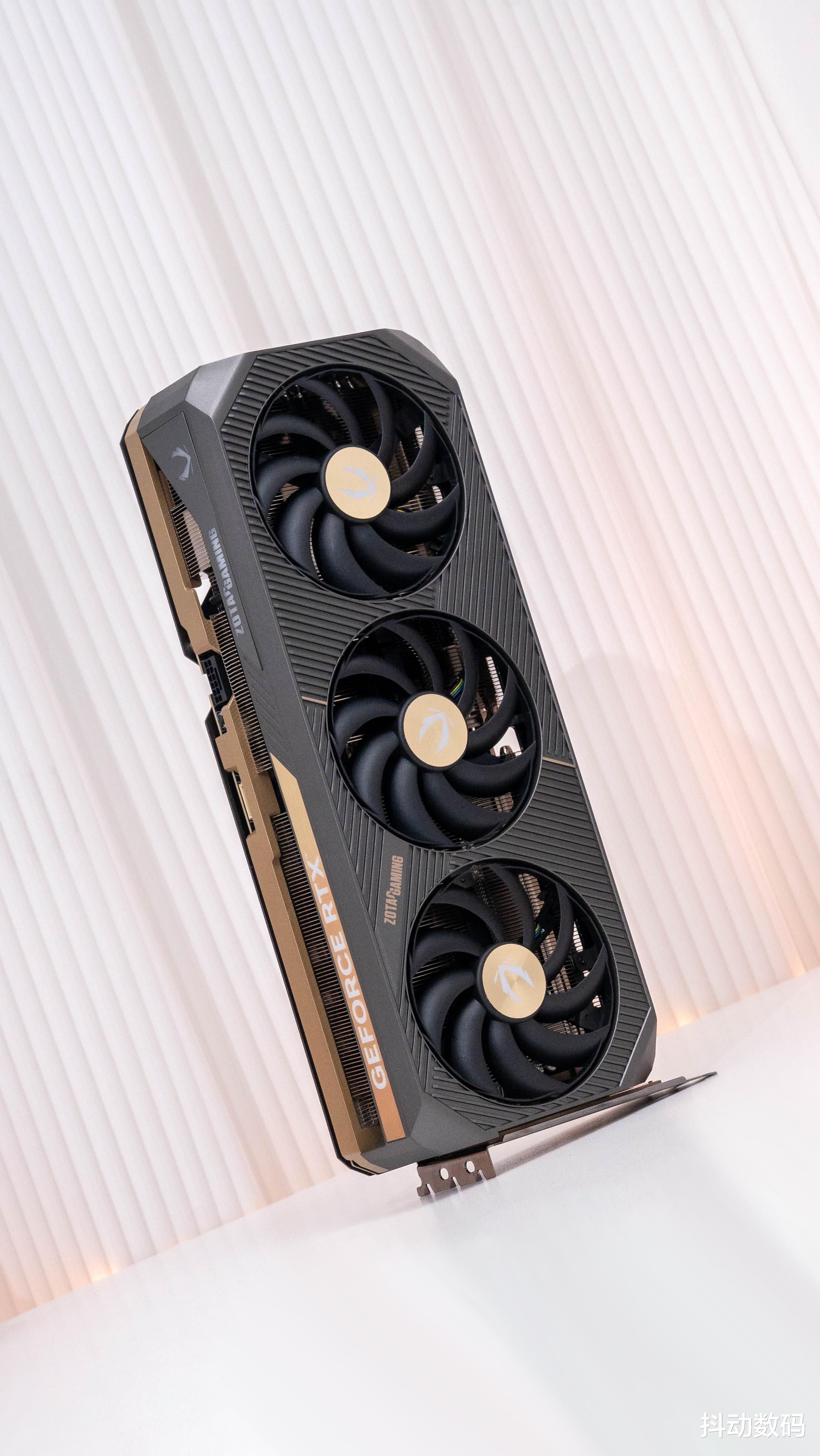 显卡是索泰RTX 5080 16GB SOLID OC ,灰色搭配金色点缀的设计也是非常好看的一张显卡。作为RTX 5080显卡,它的散热也是非常夸张。三风扇设计,搭配超规格的散热配置也让这张显卡厚度超过了三槽的厚度设计,67.9mm的厚度也是各位玩家装机的时候需要注意的。