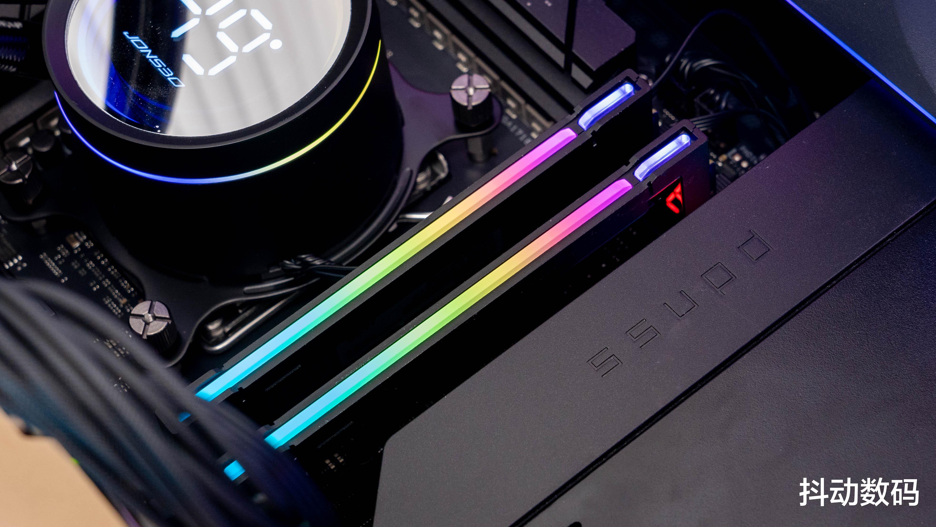 这次装机AMD平台我也选择了6000MHz CL28这个甜点频率,而颜值才是我选择它最大的原因。散热马甲大面积的镜面工艺加细腻的黑色喷砂边框,视觉上极具冲击感。