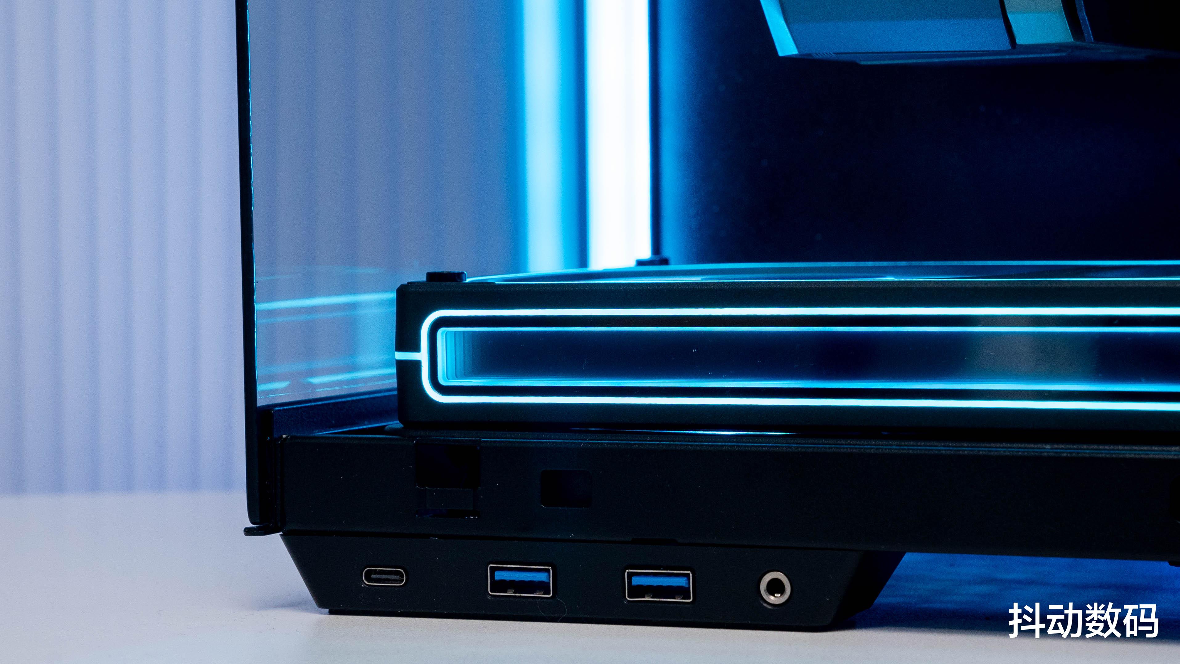 机箱IO设计在底部,设计了1个USB 3.2 Gen2 Type-C、2个USB 3.0 Gen1 Type-A以及1个3.5m耳机/麦克风接口。
