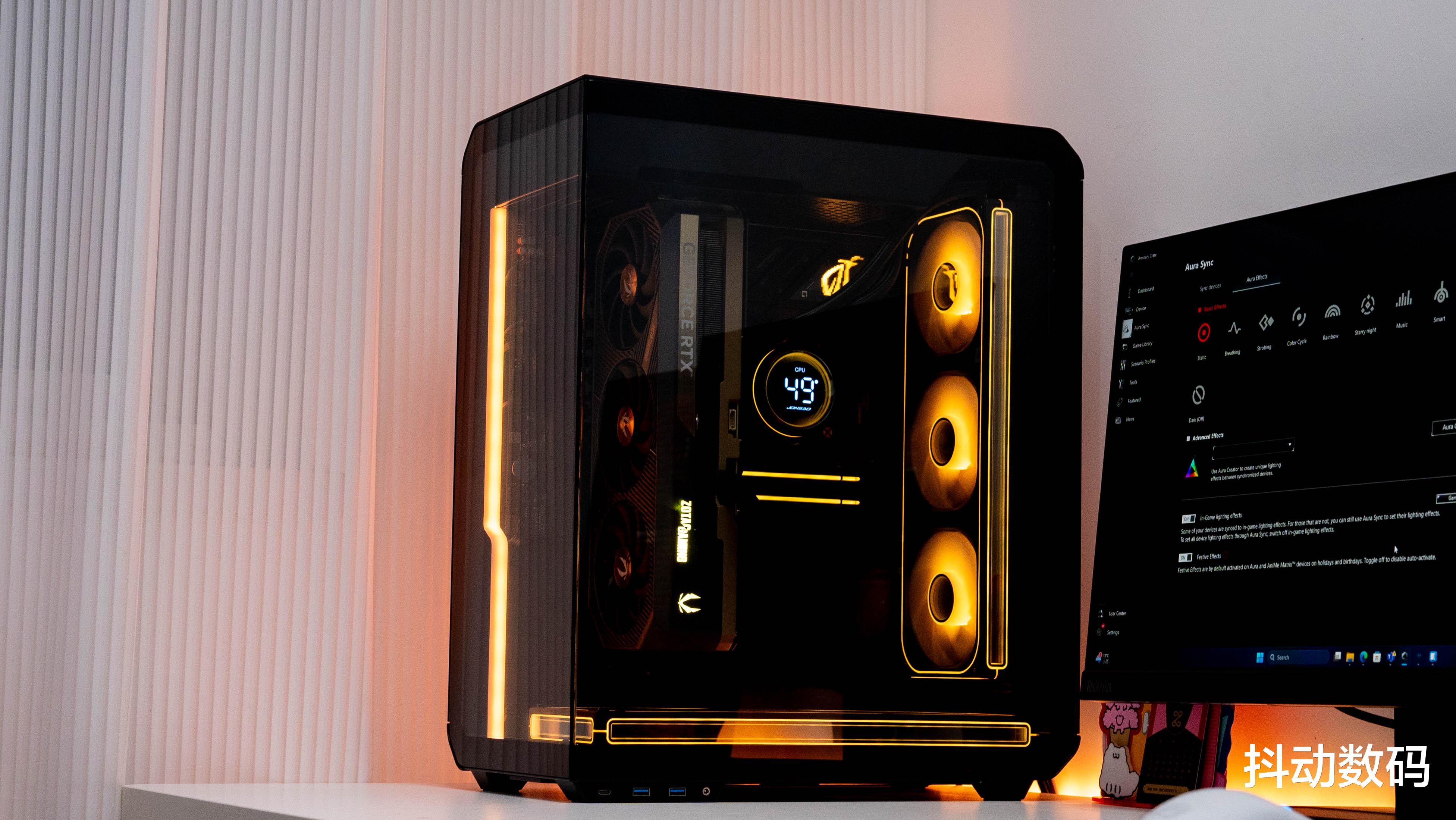 整机展示:我选择了默认形态装机,整体垂直风道设计搭配联体风扇的千层镜灯光效果整体是不是很炫酷?