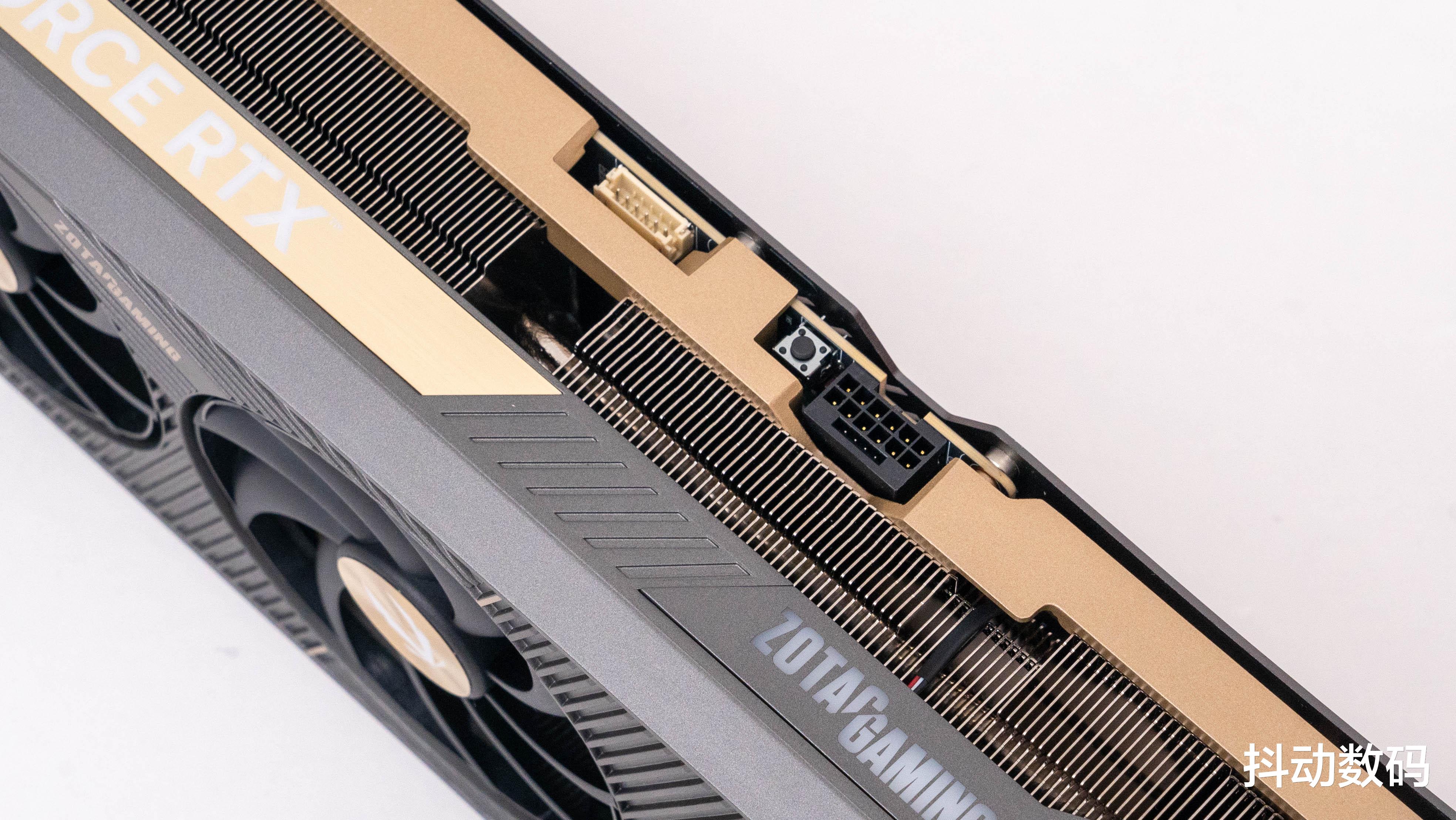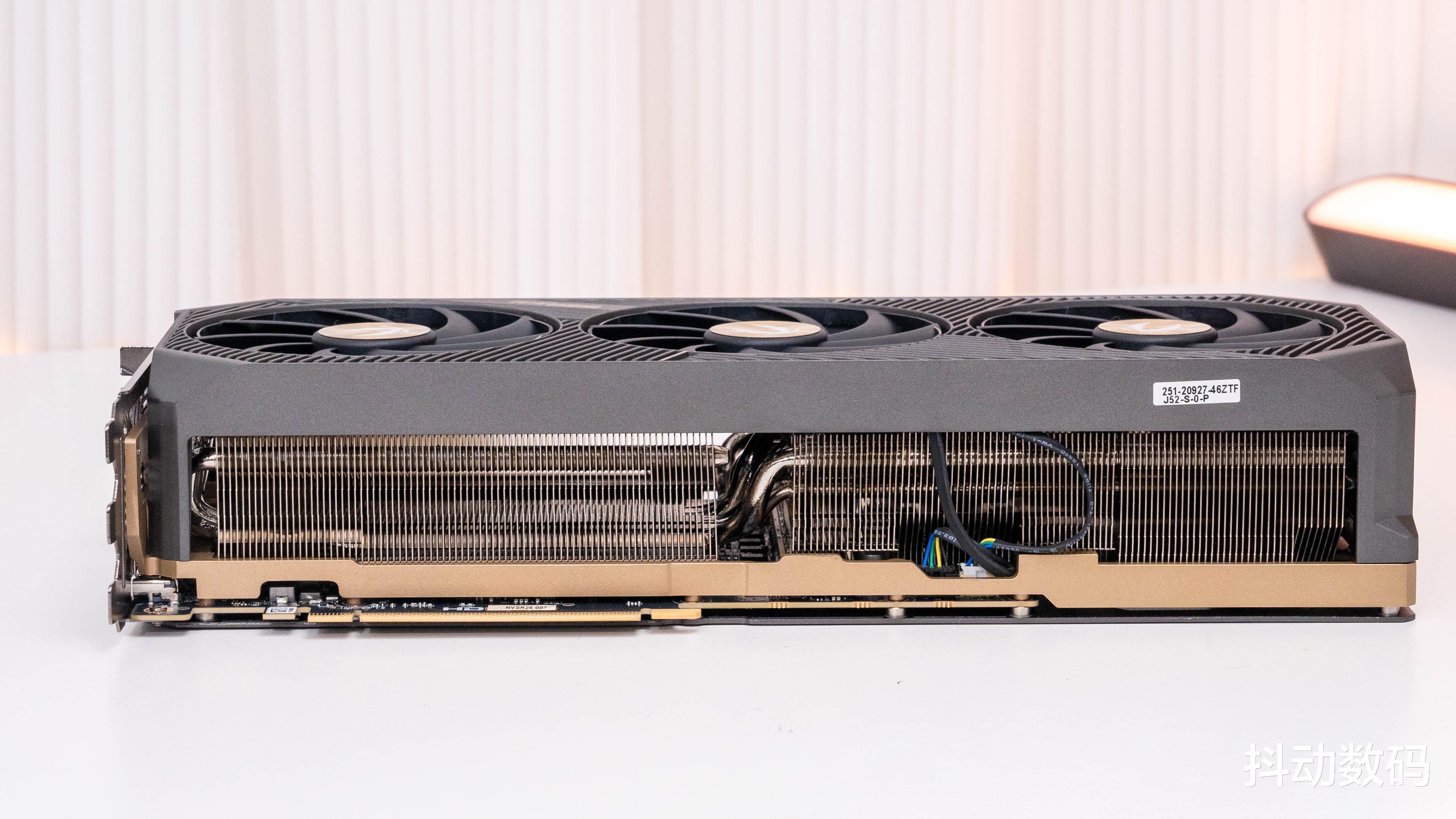 侧面看上去会看到整张显卡的散热规格都是非常夸张的,内部的热管与散热鳍片的配置十分豪华。