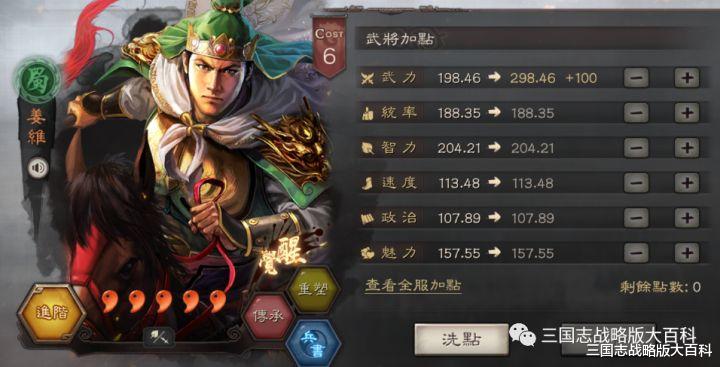 纯武姜维比起纯智姜维,嫖蛮勇的智力点会更多,更高的武智合计带来更高的义胆雄心削弱的属性合计(夺魄的属性是不会提升义胆的削弱值),也会让姜维整体伤害量更高。