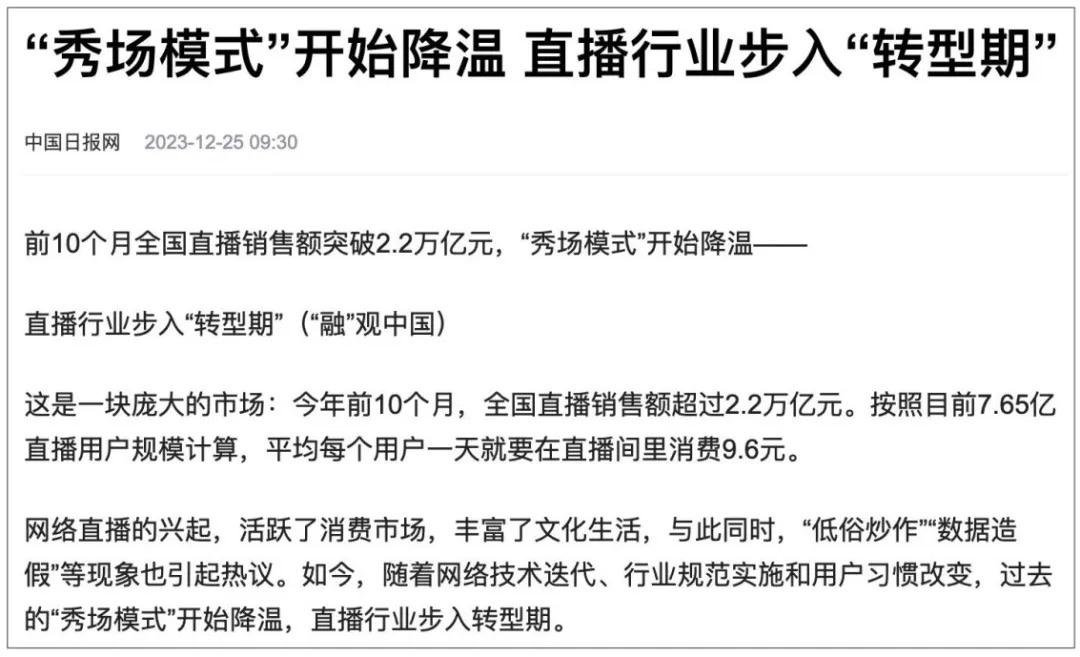 值得注意的是,去年底,“秀场模式”开始降温的现象就得到媒体聚焦。