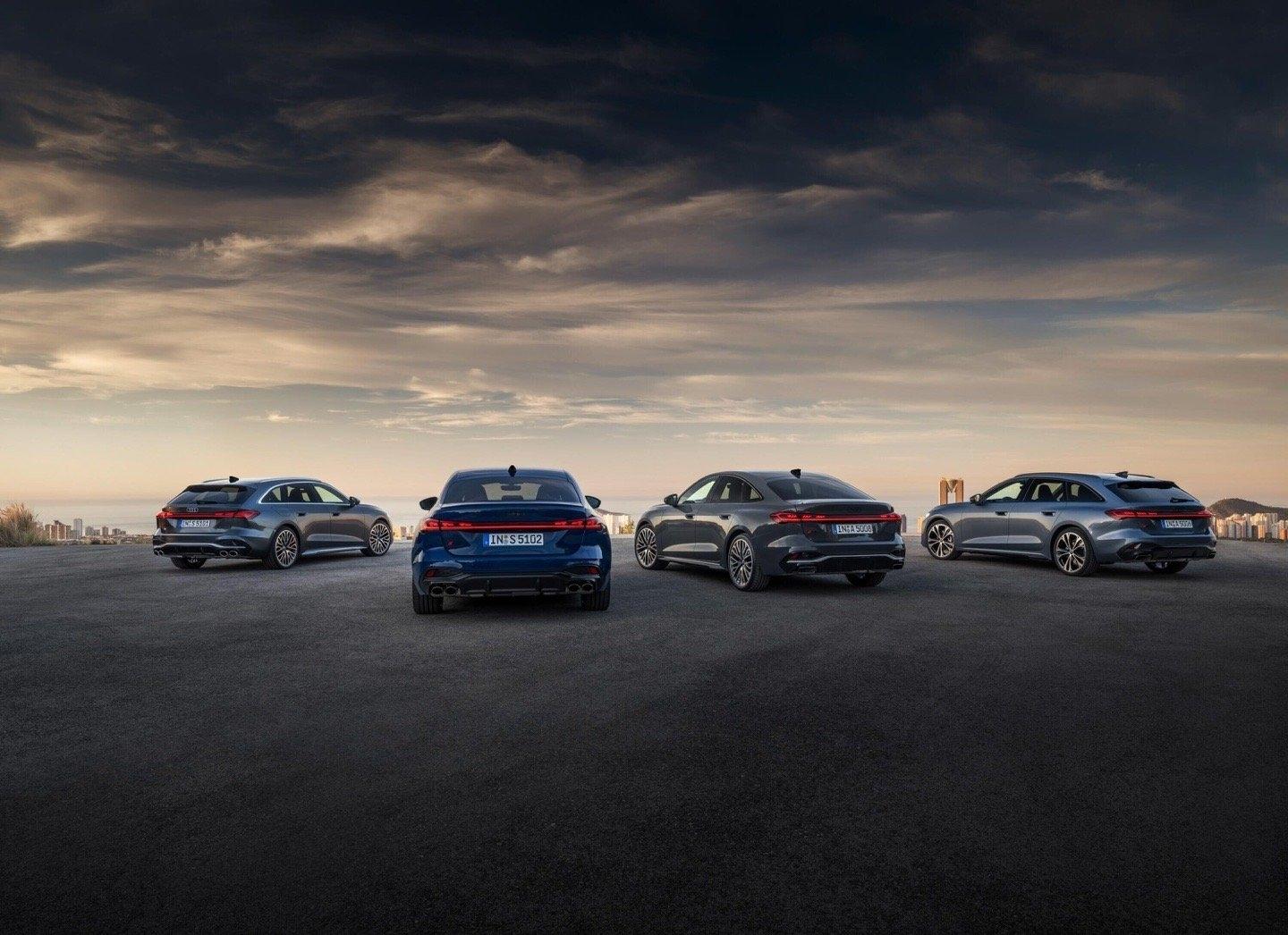从这张全家福来看,新一代奥迪A5既保留了原先A4的标准三厢车型,也有三厢溜背版(对应现款A5 Sportback),也有旅行版(对应现款A4 Avant)以及跨界旅行版(对应现款A4 allroad)