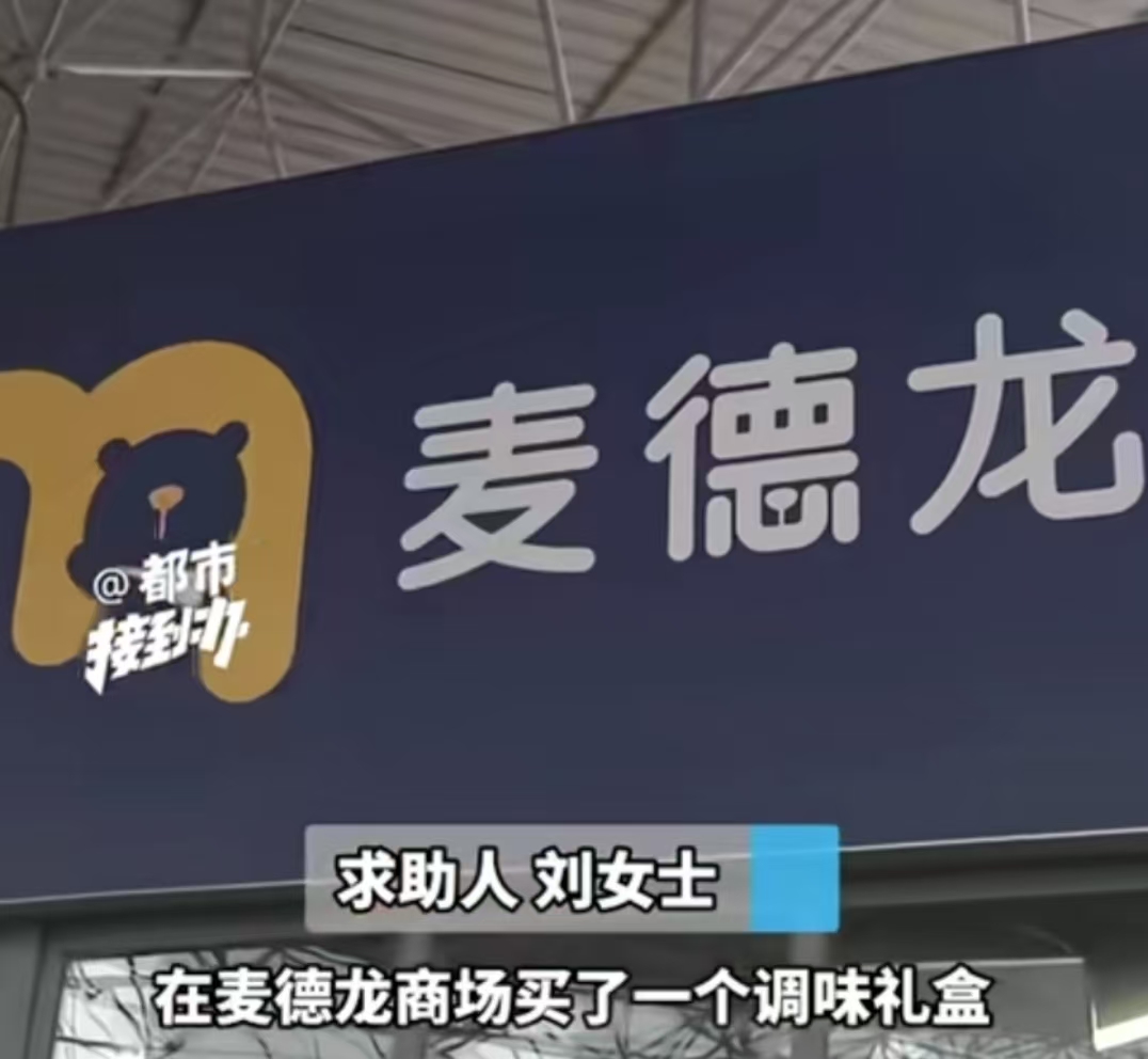 于是联系媒体维权,毕竟这个新闻素材那可是不常见啊。来到麦德龙商场,之前买的调味礼盒已经下架处理了,工作人员表示这是员工疏忽导致的。