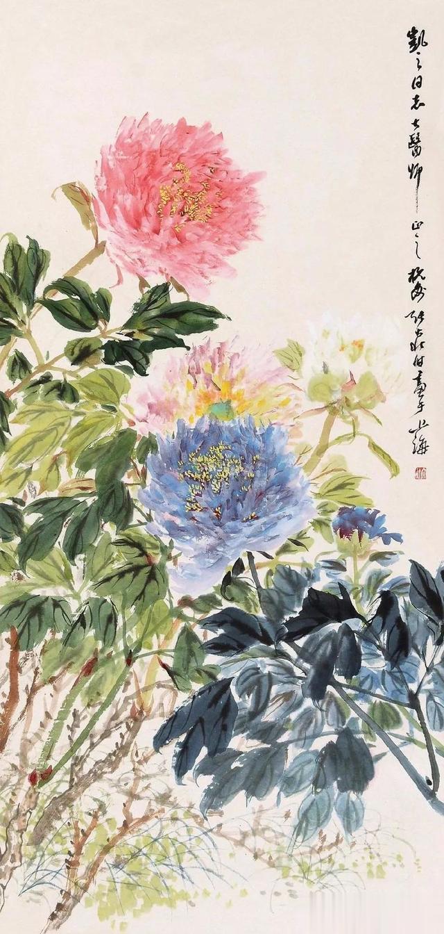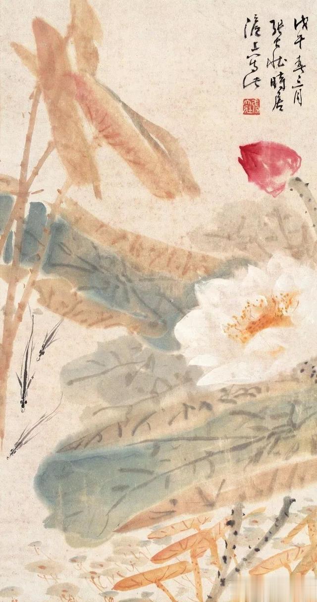 张大壮(1903—1980年),浙江杭州人。原名颐,又名心源,后更名大壮,字养初,号养卢,别署富春山人。章炳麟(太炎)外甥。曾为中国美术家协会会员,上海国画院画师。1982年上海人民美术出版社出版《张大壮画集》。地展现它的秀色。未开放时绛紫色的花苞象小家碧玉;开放时,它
