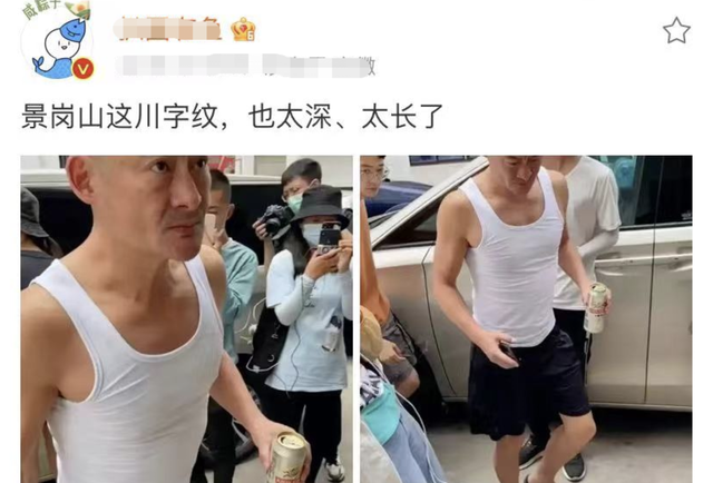 今年6月7日,久违了的景岗山身穿白色背心,黑色短裤,脚踩一双人字拖现身拍戏现场。