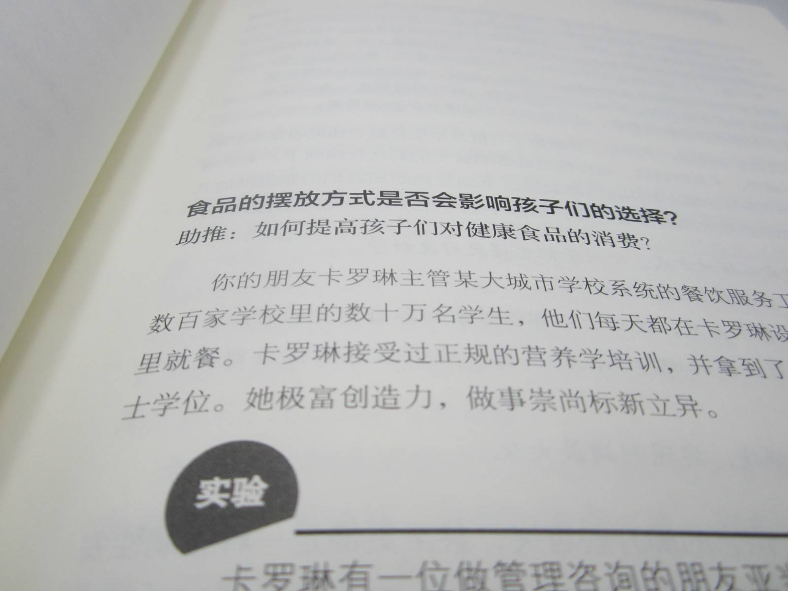 看起来助推是小细节(书里面提到的全是小细节),但是为什么一个人行为居然要由他人影响?要由他人决定?多吃个鸡腿怎么了?吃坏的是自己的身体,自己的行为自己负责就是了,这哪里需要一个外人来指指点点?看似温和的“助推”,其实隐藏的不就是某些人想要别人按照自己的设想来行动的理想么?