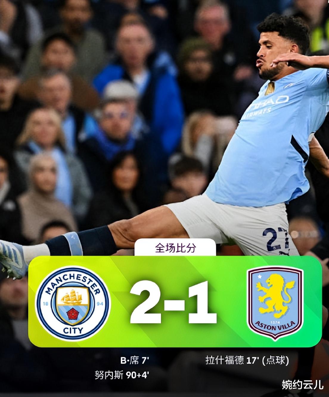 曼城绝杀维拉,连胜模式有望继续,英超争四占据主动