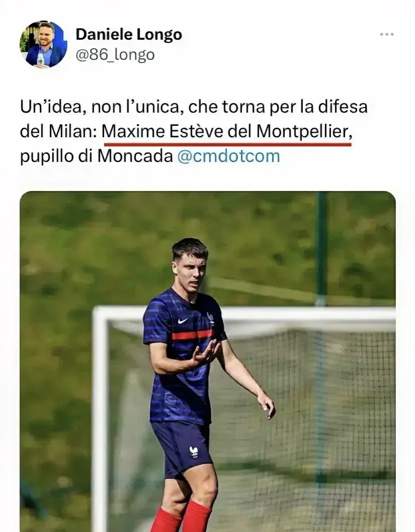 对于米兰后防线来说,一个想法是回到蒙彼利埃的马克西姆·埃斯特夫,但他不是唯一的想法。蒙卡达很喜欢他,需要花费700万左右,但米兰先需要做好出售。