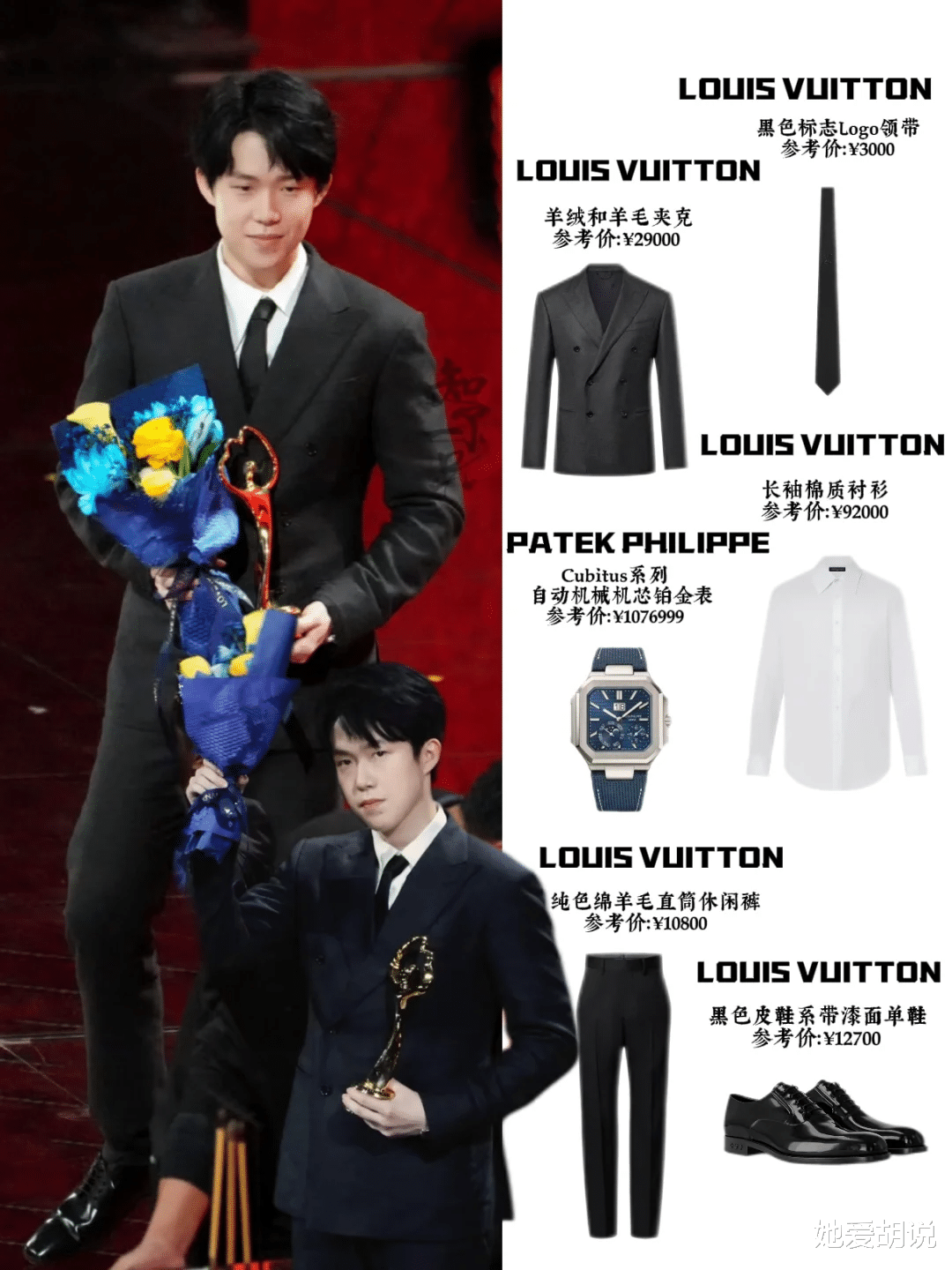 搭配的腕表更是国内仅一支的百达斐丽,价值百万!