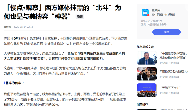 直新闻,「慢点·观察」西方媒体抹黑的“北斗”为何也是与美博弈“神器”
