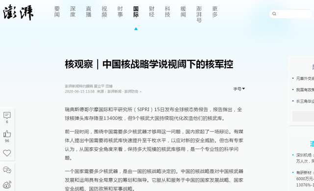 澎湃新闻,核观察|中国核战略学说视阈下的核军控