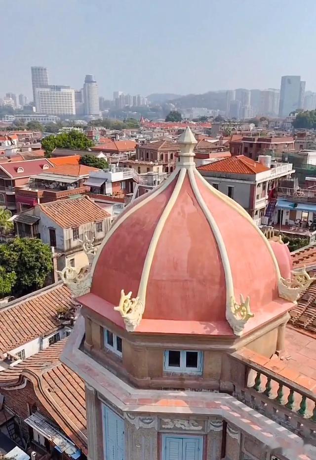 在天气晴朗的日子,金瓜顶在阳光下的照射下更是熠熠生辉,令人不禁停下脚步,驻足观赏,细细品味跨越百年岁月仍然风姿不减,经历时间洗礼更添韵味的鼓岛建筑文化之美。