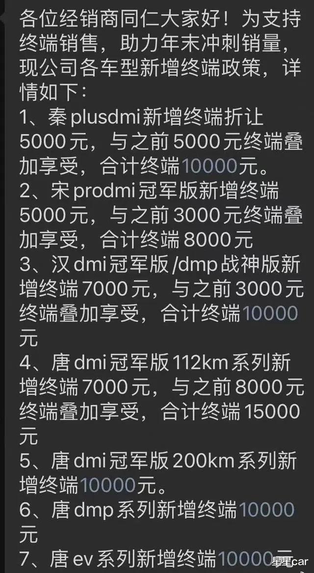 唐DM-i冠军版200km车型、唐EV系列均追加补贴1万。