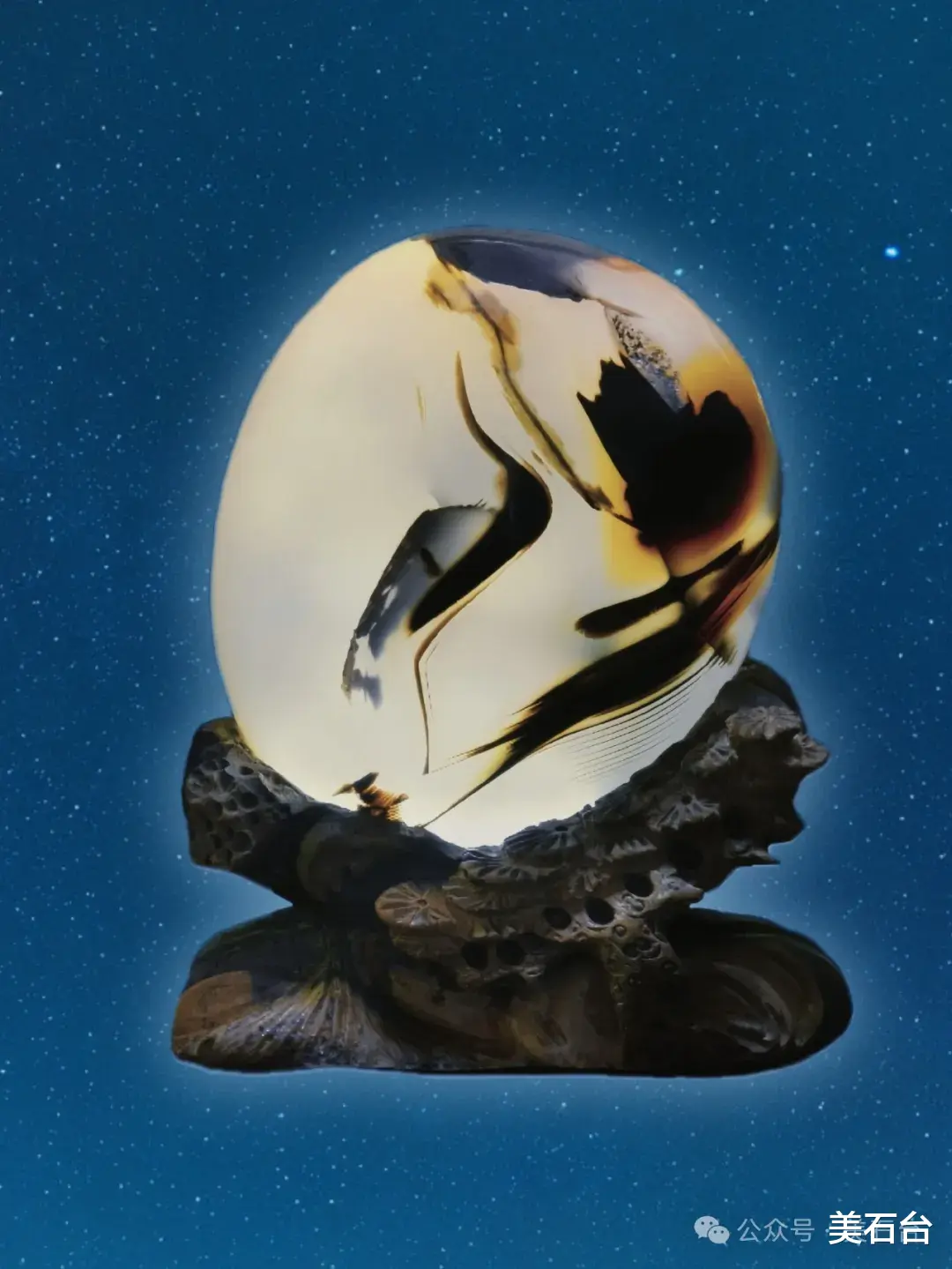 2019年7月10日,昆明国际石博会。一块海洋玉髓《天鹅之恋》以12.88万的高价藏家。买家江苏藏友丁顺兴,卖家山东马仁利。