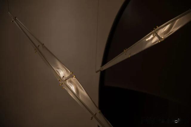 Baxter 的手工吊灯吊灯的整体呈流线型下坠,似有一股宫廷风,奢华又浪漫,镍丝弯曲的结构与内置灯座的特殊夹子相连起108颗小灯泡,精美而独特。