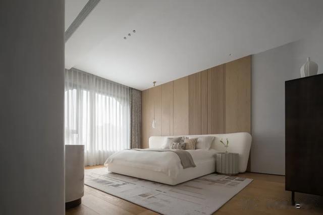 主卧室的设计并不复杂,材质与彩色都强调干净简洁,自然而有活力,它应当与主人宁静而和谐的内心世界是统一的。