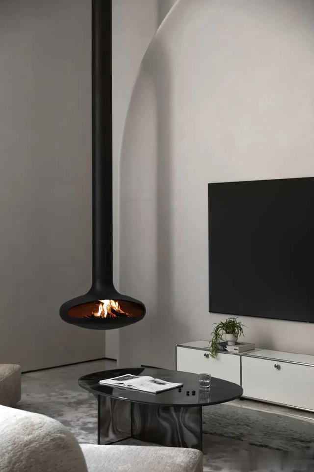 循着光继续向前,是一个很大的挑空多功能会客空间。它可以是客厅,围坐闲聊看电视直播;可以是茶室,三五好友对坐品茗;也适合小酌,配有精致的吧台和整面墙的藏酒展示。尤其是融入了一个虽然不大但充满野趣、细节满满的室内花园,让空间自然气息弥漫,创造出既宁静又富有交流氛围的环境。