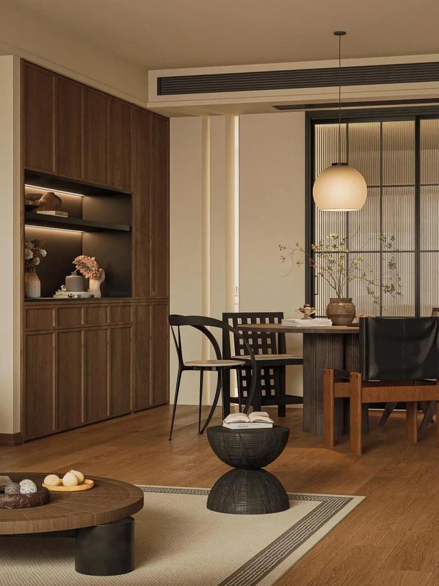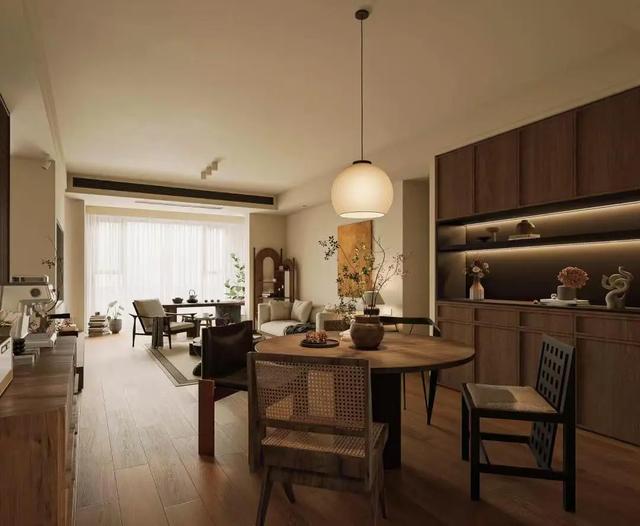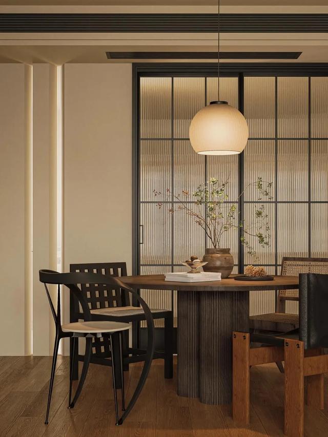 中式中古风格所带来的质感是独一无二的,它既有中式禅意,又有中式浪漫,可以现代,也可以复古。它用留白演绎岁月的沉淀韵味,落地松弛感拉满。布局上追求“意境深远,层次分明”,开放式布局勾勒出空间的流动韵律。