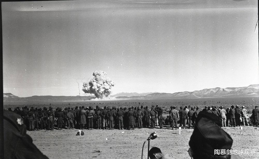 事实上,参加核爆炸试验的普通美军步兵也同样没有任何防护措施。肯德尔开车将他们送到“归零点”附近,这些人躲进战壕或猫耳洞里,当原子弹爆炸时,这些可怜的美军士兵被命令在15秒后立刻从掩体内起立,正面迎向核爆炸方向,直接硬抗冲击波。但是,面对凶猛的核爆冲击波,很少有人能够正面硬抗,往往被冲得东倒西歪。