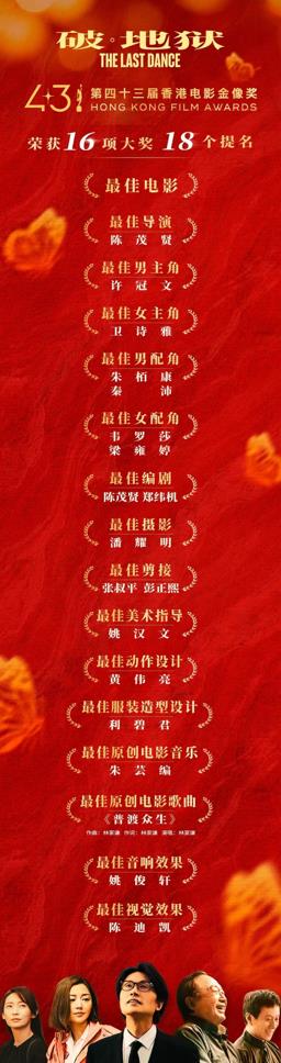 第43届金像奖提名名单公布,《破·地狱》《九龙城寨之围城》领跑