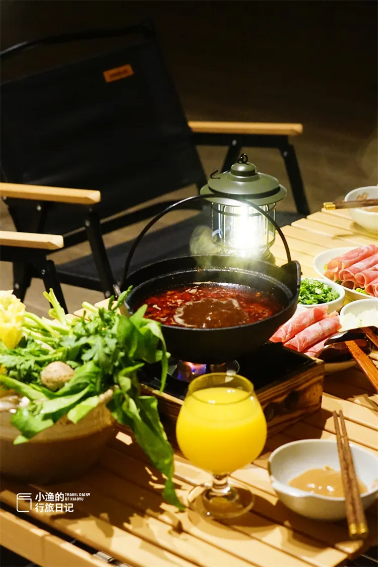 晚饭在民宿里吃的小火锅,坐在院子里吹着风、听鸟鸣,把“酒”言欢、人生几何。