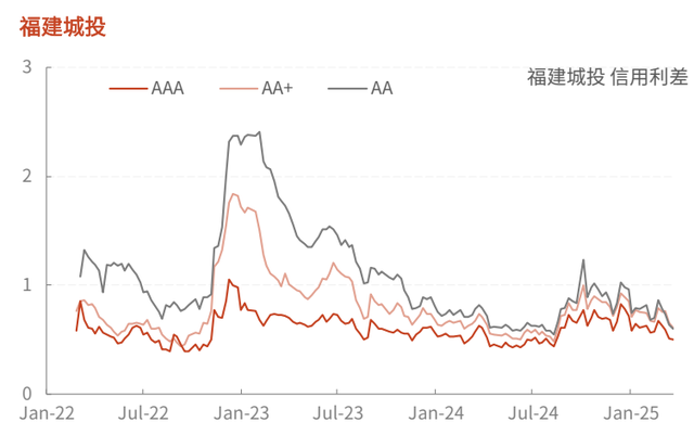 环比变动:上周AAA级信用利差上行最多的是甘肃,上行6BP,下行最多的是河南,下行9.5BP;AA+级信用利差上行最多的是重庆,上行0.6BP,下行最多的是广西,下行15.8BP;AA级信用利差上行最多的是河南,上行3BP,下行最多的是山东,下行13.2BP。