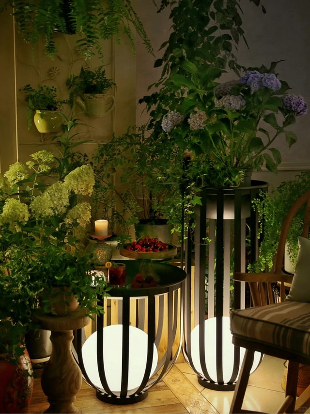 这样的灯光设计,让阳台的夜晚既明亮又不失温馨,仿佛置身于一个梦幻的童话世界。