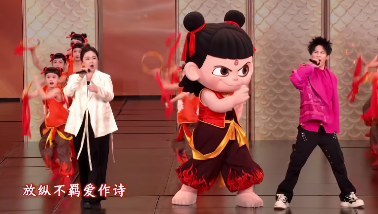 比如大张伟就带来了一首充满活力与激情的《哪吒闹》,据说这是他六年前为哪吒写的歌,今年终于有机会唱给大家听了,不得不佩服他的前瞻性。