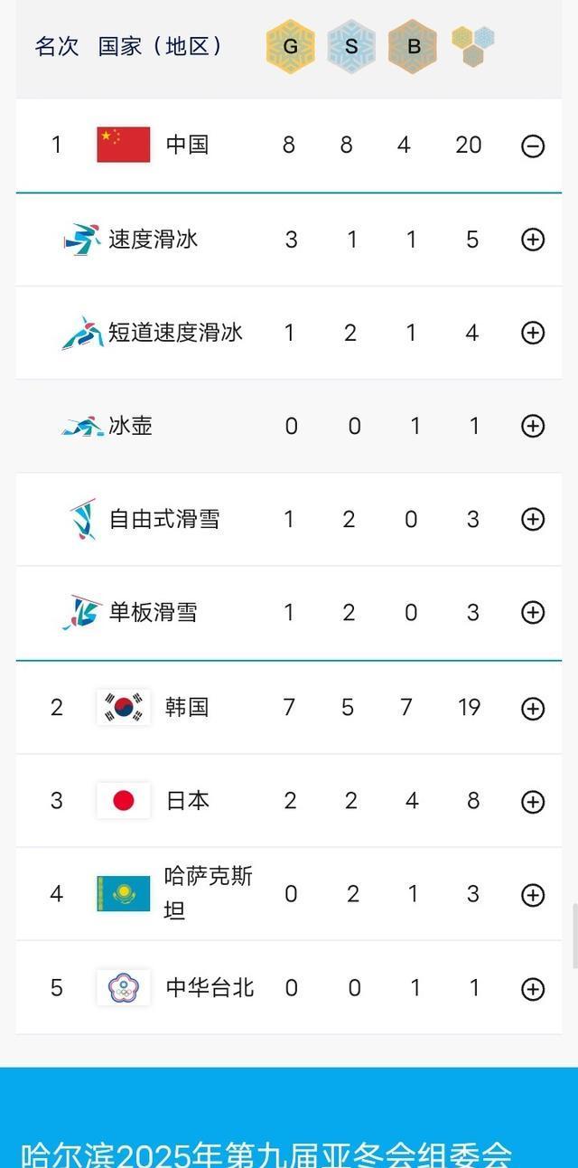 随着各项比赛的进行,亚冬会的金牌榜也逐渐清晰。中国队在多个项目上表现出色,无论是在短道速滑、速度滑冰、单板滑雪、自由式滑雪还是越野滑雪等项目上,都收获了众多奖牌。这些奖牌不仅仅是对运动员们的肯定,也是中国冰雪运动发展的见证。在未来的比赛日里,中国队的健儿们是否还能创造更多的辉煌呢?这是我们满怀期待的问题。