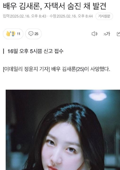 哎,真是让人难以置信!2月16号,一个晴朗的下午,25岁的韩国演员金赛纶被发现离开了人世,消息一出,整个网络都炸开了锅。警方初步判断是自杀,可这突如其来的噩耗,谁又能接受呢?一个正值青春年华,前途一片光明的姑娘,怎么说没就没了呢?