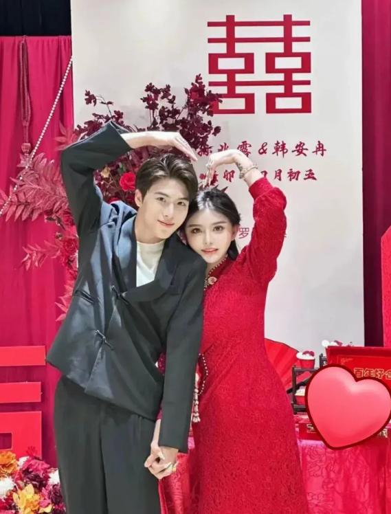 韩安冉与宋浩然是一对“姐弟恋”,女方比男方大5岁,男方刚过19岁生日。由于法律规定未满20岁不能结婚,他们只能先办婚礼,等待领证。虽然已经是第四次结婚了,但韩安冉并没有低调处理,而是选择了全程直播,从化妆到接亲到婚礼,都让网友们目不暇接。