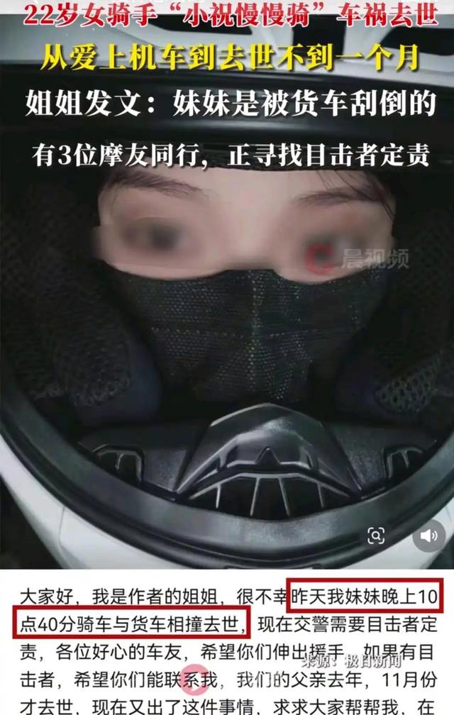 为了了解事故发生的具体原因,小祝的姐姐在社交媒体上发文寻求目击者帮助,希望能为妹妹的事故定责。