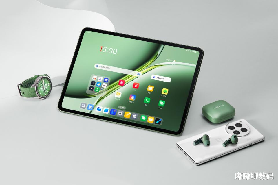 在白色系的一加Ace3 Pro手机之外,一加平板、手表和耳机则带来了一致的绿色系视觉体验,一加平板 Pro的卡其绿配色调的恰到好处,与金属材质结合之后,显得既清新又富有质感。一加手表 2从表带到表盘都是同色设计,外围的一圈时间刻度让精致感直接拉满。一加Buds 3卡其绿则在光线下透露着金属质感,与一加手表 2的金属外壳搭配起来相得益彰。