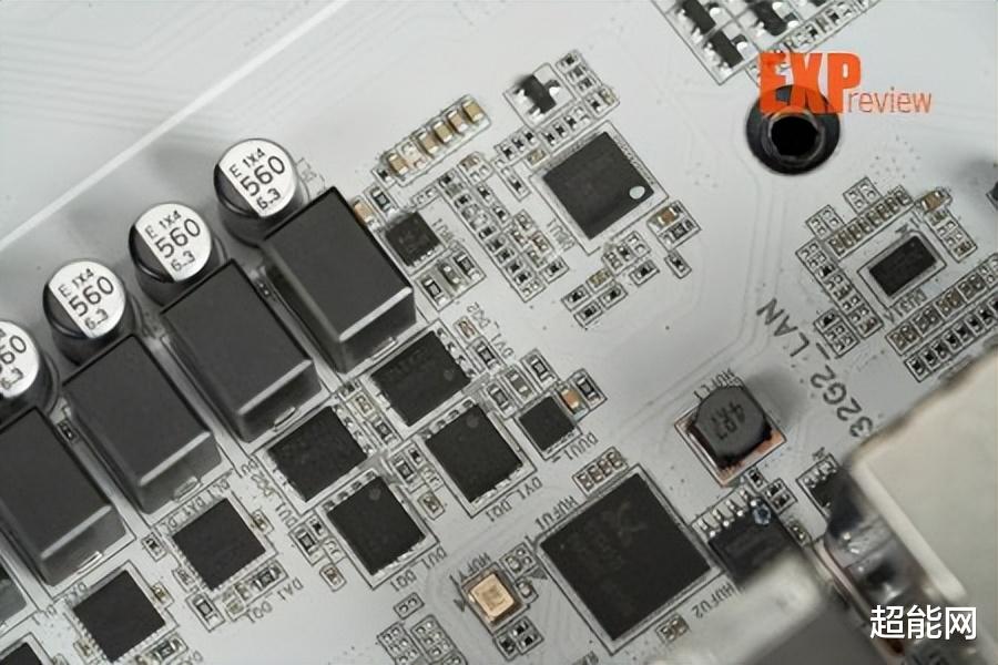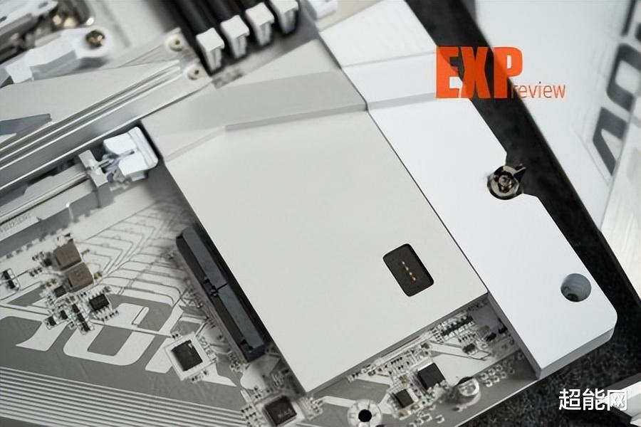 此外点亮后可能看到VRM供电散热区域和主板南桥区域是有ARGB灯光的,供电区域用的是间接照明的灯光,灯光会照亮白色的散热片,实际效果非常漂亮。而南桥区域的灯光亮度较低,不是很明显,再加上那个区域的位置也很低,导致那里的灯相当不起眼。