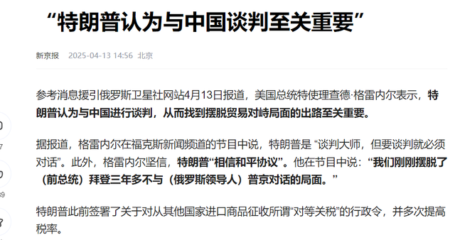 参考来源:新京报2025.04.13《“特朗普认为与中国谈判至关重要”》