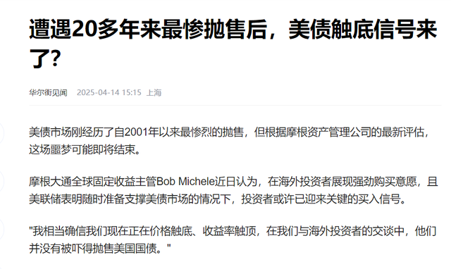 参考来源:华尔街见闻2025.04.14《遭遇20多年来最惨抛售后,美债触底信号来了?》