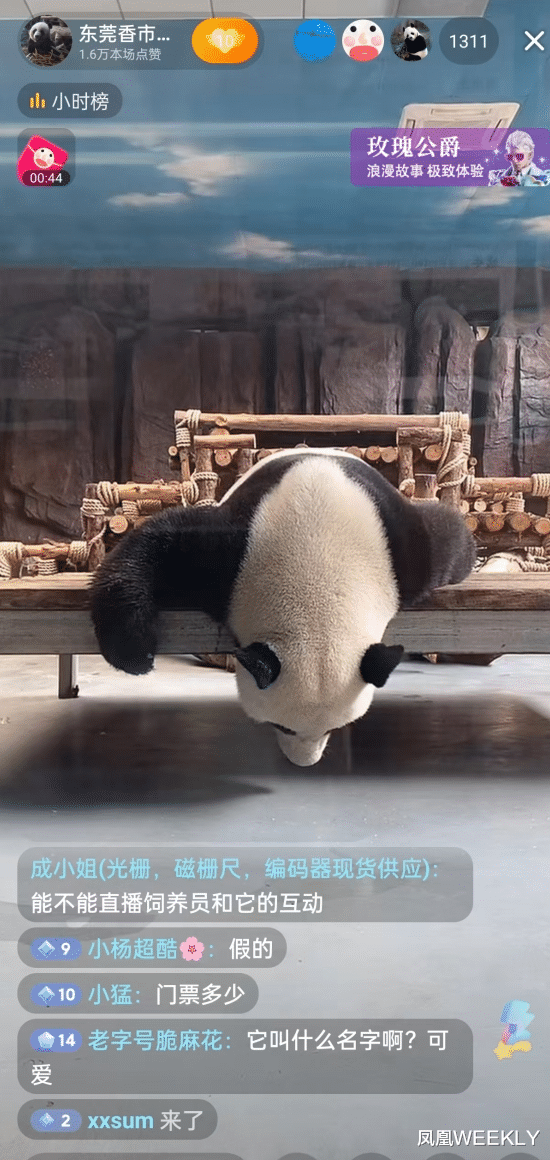 第二天,10万网友涌入香市动物园的直播间,观看这只大熊猫倒立睡觉。高峰时刻,有1000多人同时在线——新媒体团队非常惊喜,他们做了二三年直播,这个数字通常只是几十。