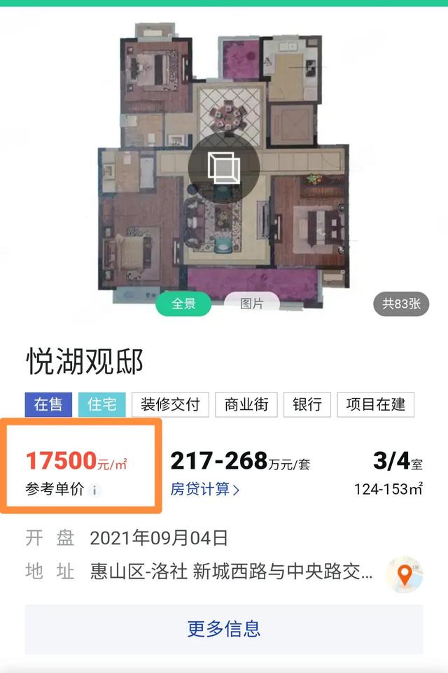 比如这一套“悦湖观邸”,2022年3月的单价为1万1千多,比市场价便宜了6000元,整套房比市场价便宜了近80万。(这套房现在已过了截止日期,买不到了)。