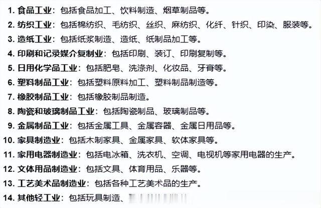 大致数了一数,轻工类涉及14个门类,如上图所示。