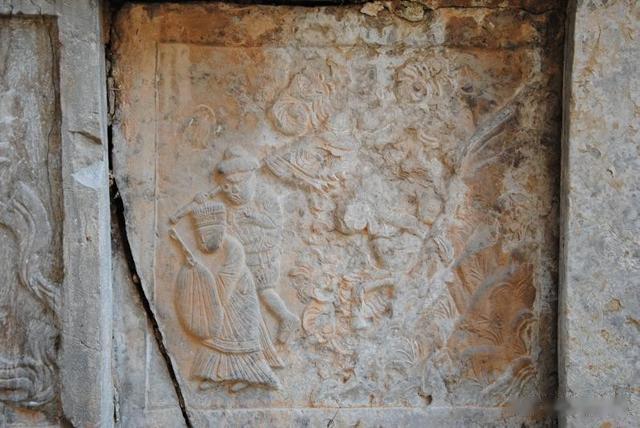 与典籍对照可知,图1表现的正是阿恕伽施土的故事。画面左侧的大城为王舍城,托钵的佛陀为释迦佛,二小儿分别为德胜与无胜。但二小儿的动作与典籍所云一者捧土献佛、一者合掌随喜的记述不完全符合。该图像一佛、二弟子、四菩萨组合,呈现出浓厚的礼拜像的构图倾向。该嵌板原应与一处横石题记:“尔时释迦佛出王舍城□钵教化路之□牧牛二童献沙之处”对应。