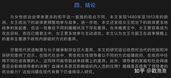 一篇NBER working paper,将目光转向历史,试图从十五到二十世纪的欧洲历史中寻找女王与战争之间的关系。详见Oeindrila Dube and S.P. Garish.(2020).”Queens” Journal of Political Economy,128(7),2579-2652 女性统治会带来更多和平吗?-来自近代欧洲的实证证据该研究得出结论:女性统治者参与战争的概率比男性高38%-40%,且主要通过主动挑起新战争来实现。