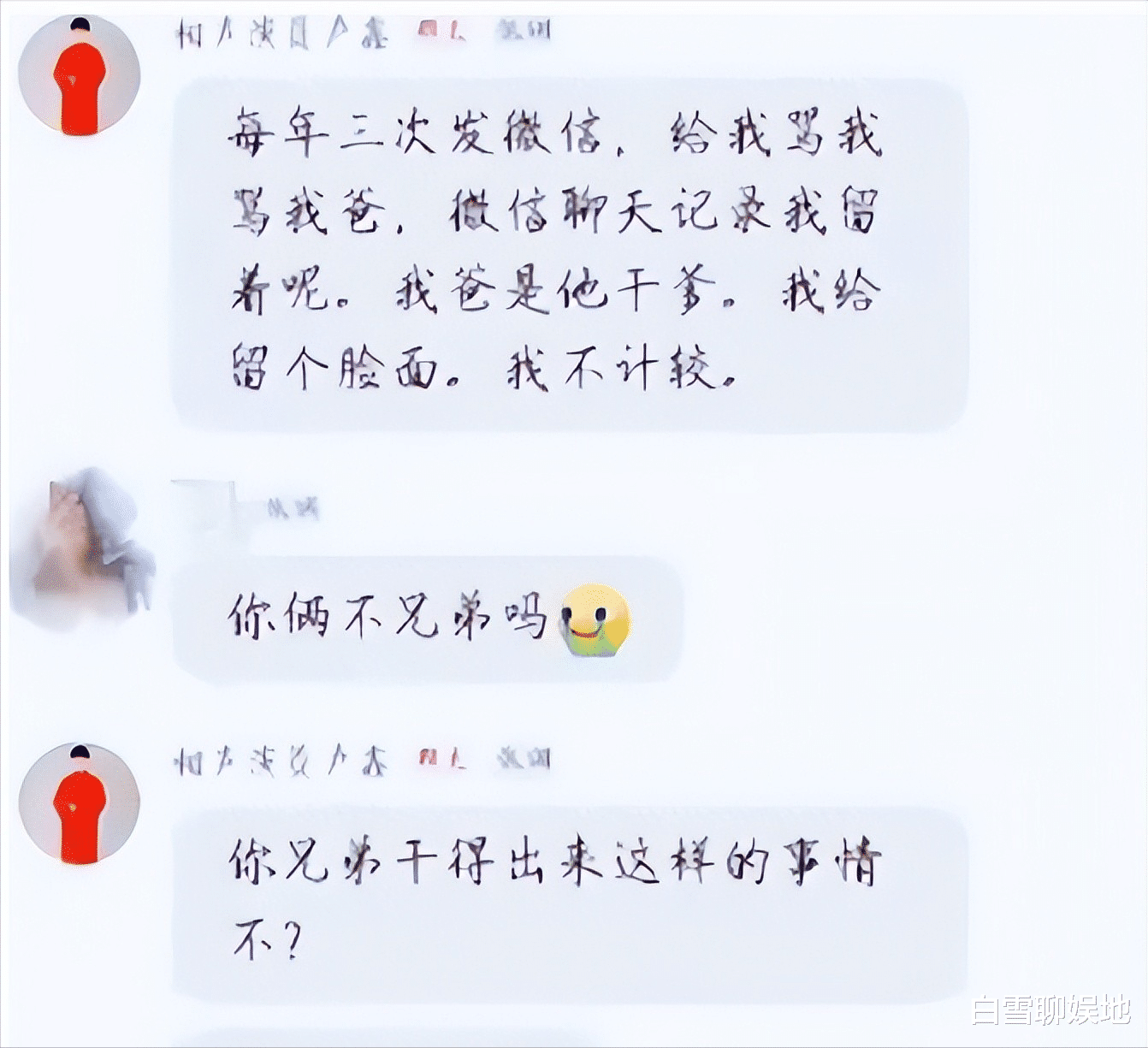 开始晒出聊天记录,广曝对方黑料,声称张玉浩对他的父亲进行了长达六年的辱骂,而他则是本着8年搭档,认识十几年的交情,才一忍再忍,没有曝光。
