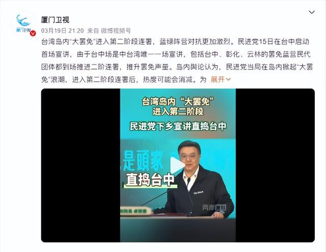 【信息来源】:台湾“大罢免”第二阶段——厦门卫视、中天电视官方NEWS