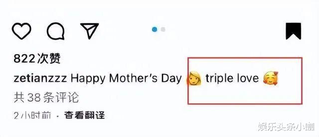 在前不久的母亲节,章泽天通过自己个人社交账号晒出自拍,并配文“三倍爱”,引发三胎猜测。